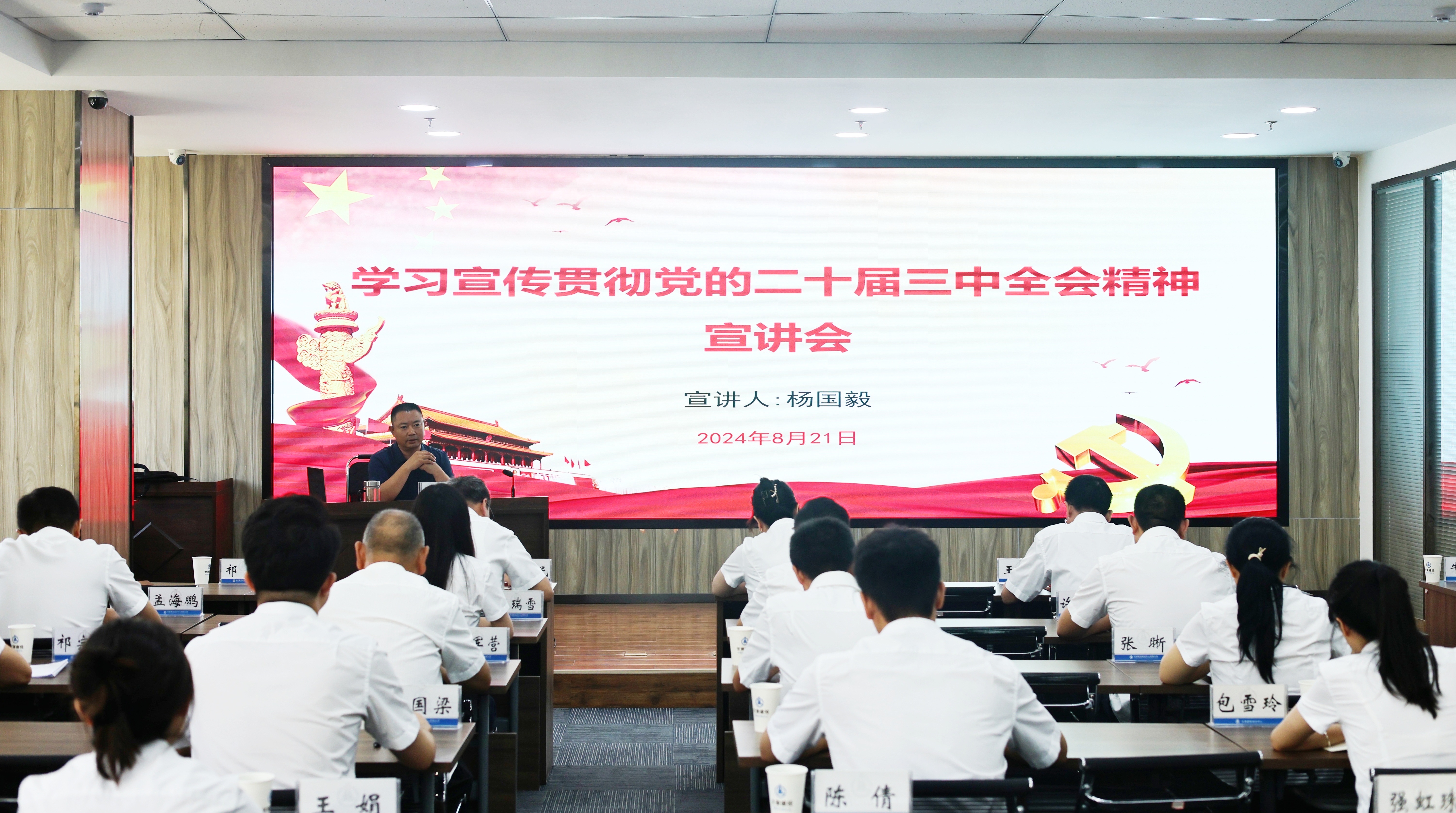 8月21日,甘肅建投黨委常委、黨委組織部(人力資源部)部長(zhǎng)、甘肅建投培訓(xùn)中心有限公司董事長(zhǎng)楊國(guó)毅到甘肅建投培訓(xùn)中心開展黨的二十屆三中全會(huì)精神宣講。
