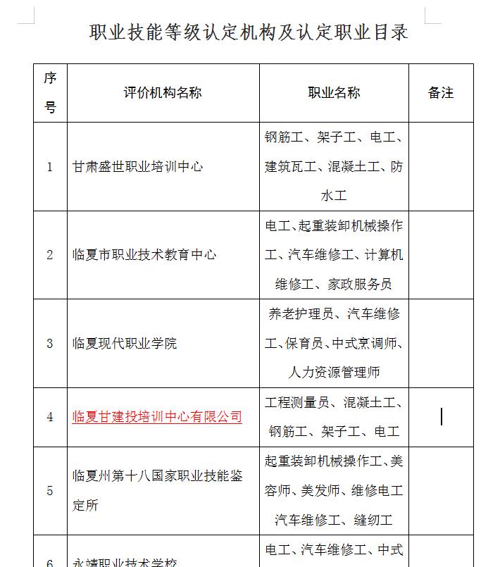 經(jīng)臨夏回族自治州人力資源與社會保障局組織專家評估,擬對臨夏甘建投培訓中心有限公司等六家單位進行備案,開展職業(yè)技能等級認定工作,這是對甘肅建投培訓中心有限公司職業(yè)技能等級認定工作的肯定,也為公司開拓臨夏市場奠定了基礎。