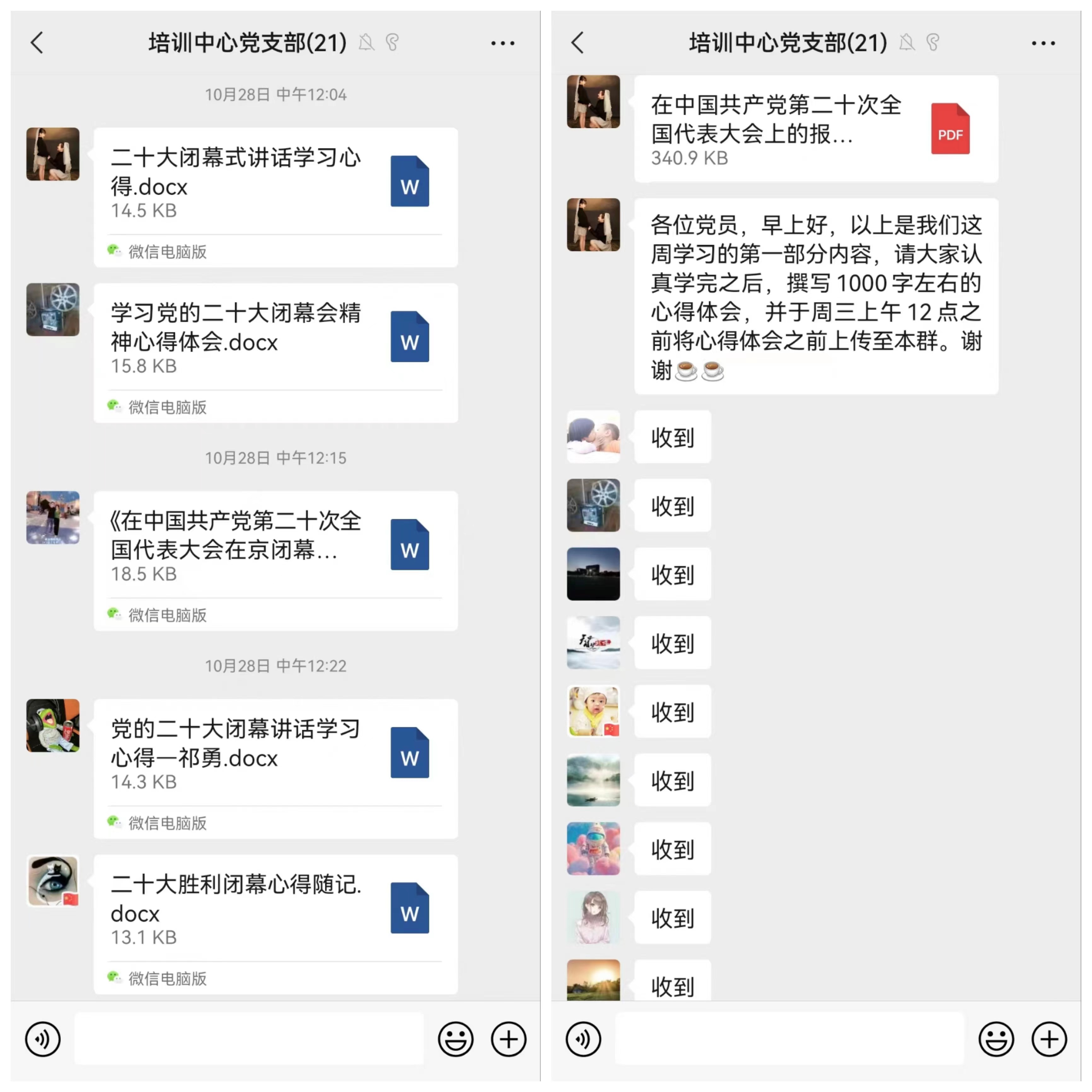 黨的二十大,是在進入全面建設社會主義現(xiàn)代化國家新征程的關鍵時刻召開的一次十分重要的大會,事關黨和國家事業(yè)繼往開來,事關中國特色社會主義前途命運,事關中華民族偉大復興。當前疫情形勢嚴峻,甘肅建投培訓中心有限公司黨支部運用黨員微信學習群號召全體黨員居家學習黨的二十大精神,真正實現(xiàn)了“線上黨建小陣地”,發(fā)揮黨員居家不停學的大作用。