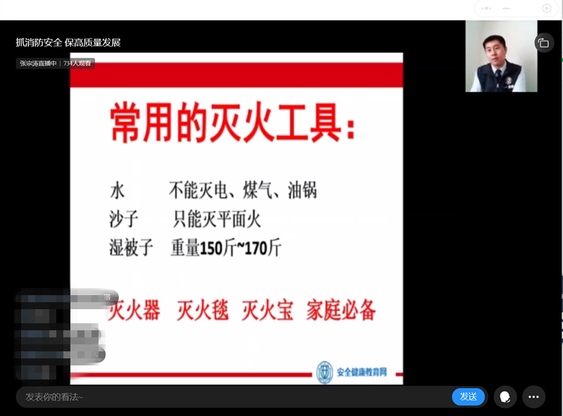 此次培訓(xùn)特邀安全健康教育網(wǎng)新疆、寧夏、陜西站優(yōu)秀講師張宗濤進(jìn)行授課,張老師從《新安法》的解讀和對(duì)企業(yè)的要求、疫情期間的注意事項(xiàng)、高層火災(zāi)的自救方式方法及電氣火災(zāi)的預(yù)防辦法四個(gè)方面內(nèi)容著手, 通過觸目驚心的圖片、視頻,一個(gè)個(gè)真實(shí)而又發(fā)人深省的案例,用“血的教訓(xùn)”警示職工高度重視消防安全,教育職工在單位及家庭無人時(shí)要關(guān)閉電源、燃?xì)獾仍O(shè)備,定期檢查消防設(shè)施,積極主動(dòng)做好單位及家庭的消防安全工作。