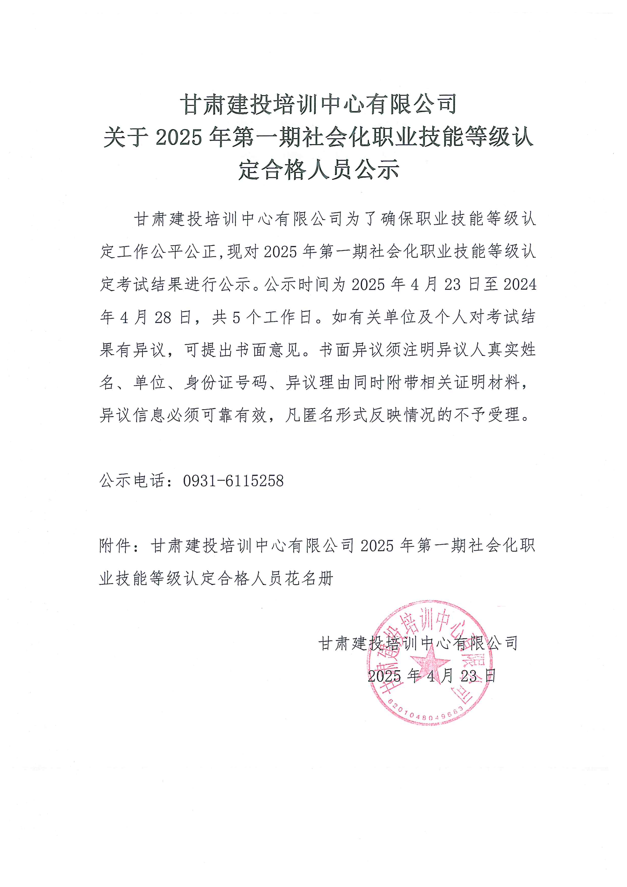 甘肅建投培訓(xùn)中心有限公司關(guān)于2025年第一期社會(huì)化職業(yè)技能等級(jí)認(rèn)定合格人員公示